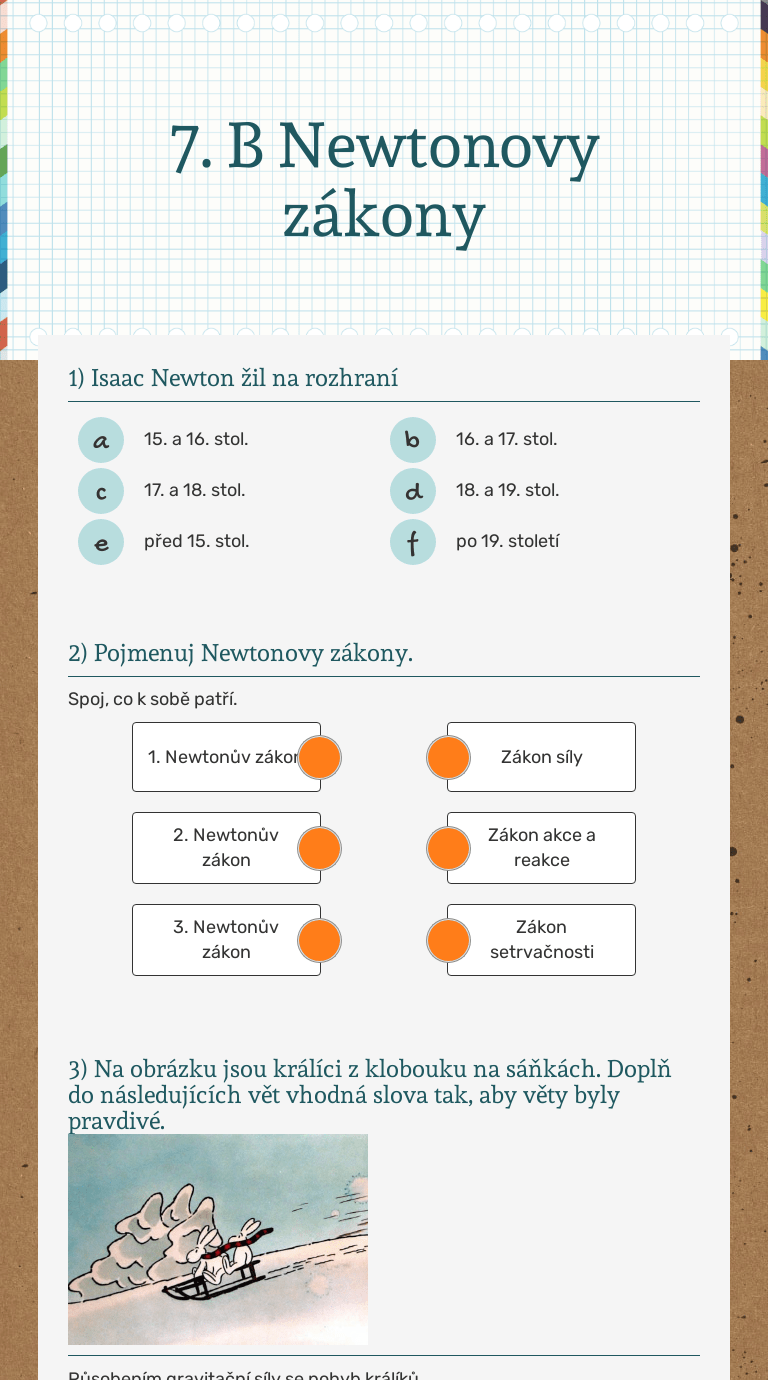 Druhý newtonův pohybový zákon (zákon síly) z toho vyplývá: Nakreslete všechny síly, které na ni působí, pokud se pohybuje (když už se jí nedotýkáme), než se zastaví. Pohybové účinky síly na těleso závisí na:. Začneme opakováním z předchozí kapitoly ( první newtonův pohybový zákon — setrvačnost ).